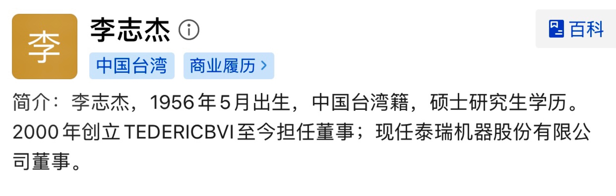 此前 TEDERIC BVI 曾是泰瑞机器前身泰瑞有限的第一大股东,持股 58%,后续通过股权转让逐步退出核心控股地位