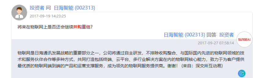 日海智能 深圳本地国企科技股 互动平台透露有并购重组意愿
