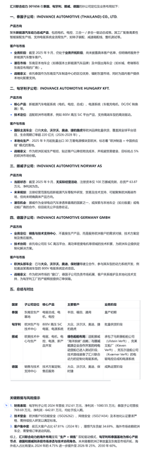 估值 市值区间:9.36*65=608.4亿元,12.16*65=790.4亿元;对应价格区间:25.29元,32.86元。 公司发行价12.48元,对应流通市值20.83亿元,总市值300.12亿元。 公司第一大股东为深圳市汇川技术股份有限公司 (83.17%),实际控制人为朱兴明。公司注册地位于江苏省苏州市。 公司主营新能源汽车电驱系统和电源系统。汇川技术是公司的控股股东。 在乘用车领域,根据 NE 时代统计,2024 年中国新能源乘用车市场中,公司电控产品份额约 10.7%,在第三方供应商