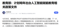 教育部科学技术与信息化司司长周大旺30日在新闻发布会上透露,下一步,教育部将继续深入推进人工智能赋能教育行动,计划在明年出台相关政策文件,系统部署推进人工智能教育和应用,构建面向未来的教育体系。按照不同教育阶段特点,分类推动人工智能通识教育,培养胜任智能时代的高素质人才。 据悉,今年教育部启动实施国家教育数字化战略行动2.0,将智能化作为战略方向之一,深化推进人工智能在教育领域的全方位应用,已经取得阶段性进展。 合力泰:后续公司将围绕电子阅读器产品开发更多应用,如在AI+教育市场中,提供教学场景