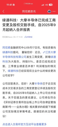 绿通科技完成并购大摩半导体,三季报将并表,双轮驱动格局正式形成! 半导体前道量检测的优质资产注入与股份回购注销,绿通科技在下一盘战略转型的大棋。 2025年8月初,当绿通科技宣布拟以5.3亿元超募资金收购江苏大摩半导体科技有限公司51%股权时,市场便期待这一跨界并购能为主业承压的绿通科技注入新的活力。 短短一个月后,这一交易便完成了工商变更登记手续。 大摩半导体已于2025年9月起正式纳入绿通科技合并报表范围,公司2025年第三季度财务报表将合并大摩半导体9月份业绩。 ______ 01 交易落