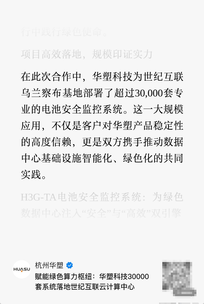 核心观点: 1、“东数西算”绿色转型催生刚性需求:电池安全管理(BMS)成为算力基础设施的“安全阀”与“节能芯”:在“双碳”目标下,数据中心PUE(电能使用效率)管控日趋严格,其内部占比约10%的供配电系统能耗成为节能关键。作为保障数据中心不间断供电(UPS)核心——蓄电池组的“大脑”,BMS系统通过智能监控与预警,能有效防止电池热失控、延长电池寿命、提升能效,是数据中心绿色化、智能化升级的必备环节。 2、华塑科技斩获行业标杆性订单,奠定数据中心BMS龙头地位:公司成功为世纪互联乌兰察布云计算中