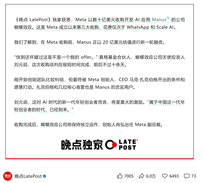 一、AI竞争进入“行动力”时代,Meta重磅收购Manus补全生态拼图 12月30日,Meta宣布以业内估计 数十亿美元 收购AI智能体公司Manus(蝴蝶效应),这是Meta历史上第三大收购案,仅用十余天便敲定,由CEO扎克伯格亲自推动。 收购完成后,Manus保持独立运营,总部仍设于新加坡,创始人肖弘出任Meta副总裁。 Manus的核心价值在于“自主执行”能力: 技术亮点:整合多智能体与工具链,支持简历筛选、股票分析等复杂任务,GAIA测试准确率达86.5%。 商业数据:年化收入1.25亿
