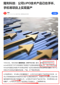 【隆利科技】LIPO技术重塑旗舰屏幕形态!Mate80极致屏占比最大预期差,深度受益!