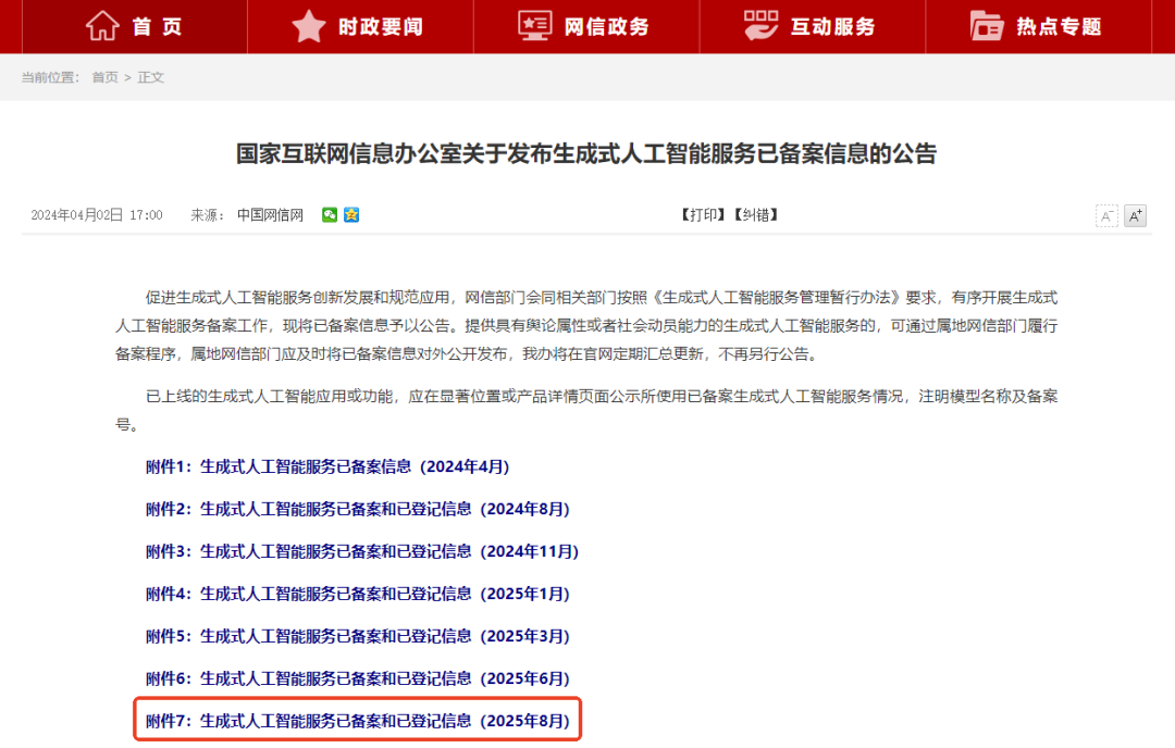 9月17日,福建省互联网信息办公室正式发布《福建省生成式人工智能服务已备案信息公告》,国投智能自主研发的"天擎公共安全大模型"(备案编号:Fujian-TianQing-202507140007)成功通过国家生成式人工智能服务备案,标志着该模型再获国家级权威认证。至此,“天擎”成为国内公共安全领域同时通过算法和服务双备案的大模型,为公司技术合规应用与规模化推广奠定坚实基础。 注:国家网信办关于发布生成式人工智能服务已备案信息的公告 生成式人工智能服务已备案信息 国投智能作为国投集团参与国家数字经